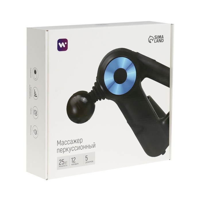 Массажёр для тела Windigo LEM-11, перкуссионный, 25 Вт, 12 насадок, 5 режимов, черный