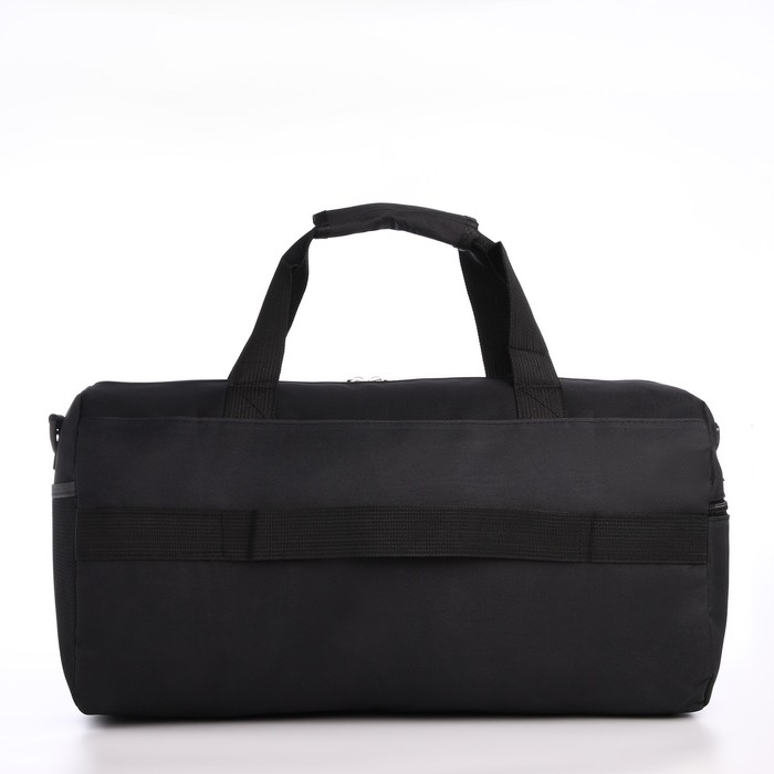 Сумка дорожная на молнии, 3 наружных кармана, держатель для чемодана, длинный ремень, цвет чёрный
