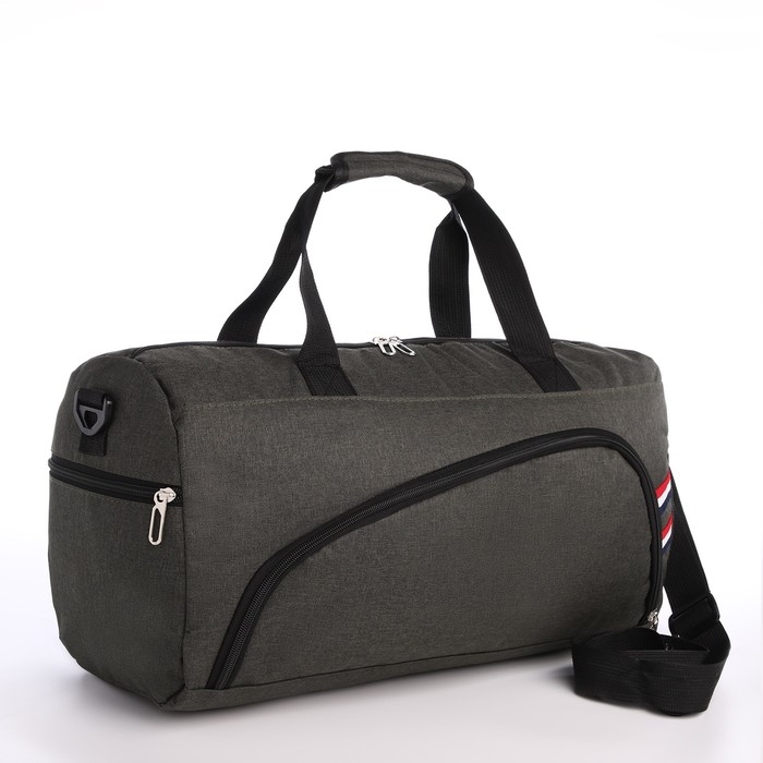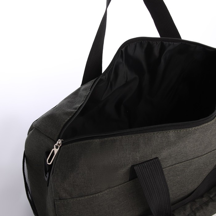 Сумка дорожная на молнии, 3 наружных кармана, держатель для чемодана, длинный ремень, цвет хаки