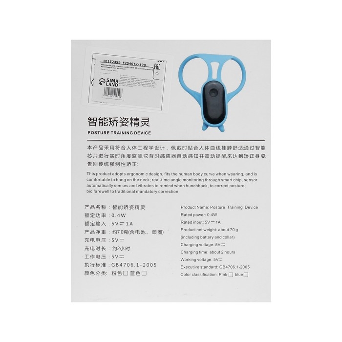 Корректор осанки LEM-27, электрический, миостимулятор, голубой