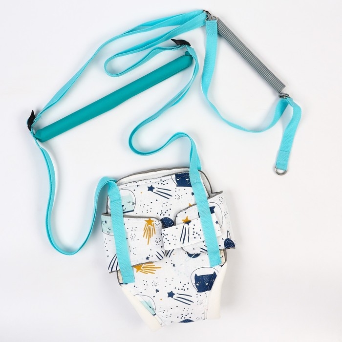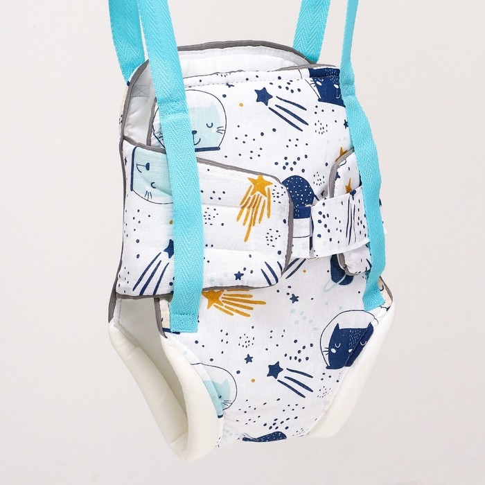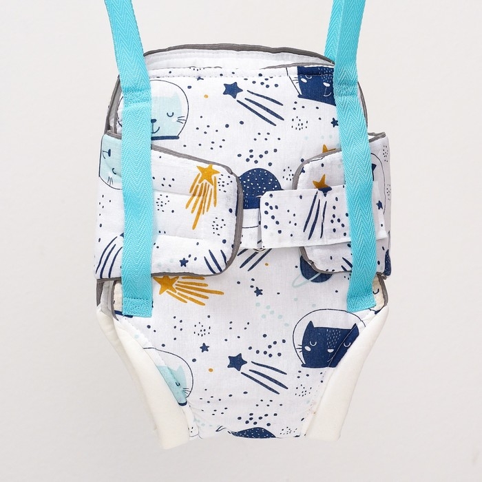 Посадите полугодовалого кроху в сиденье-штанишки. Малышу понравится активная игра, он будет подпрыгивать и качаться. Размер посадочного места можно настроить индивидуально, а за перекладину ребёнку будет удобно держаться.