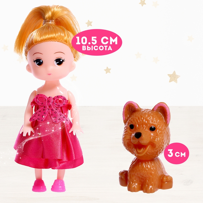 - В комплект входят кукла 9,5 см и её верный маленький питомец размером 3 см