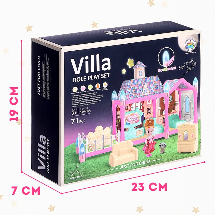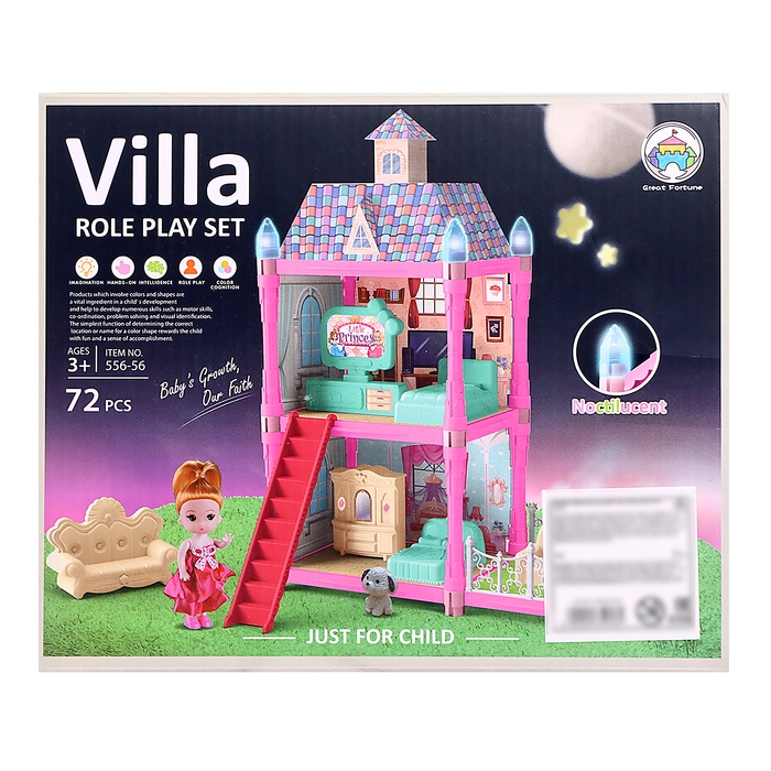 Яркий дом станет центром внимания для любой игры, предоставляя детям простор для воображения. Благодаря светящимся в темноте шпилям, дом выглядит особенно привлекательно вечером.