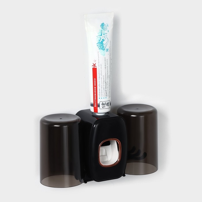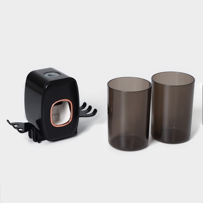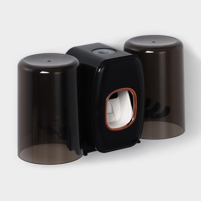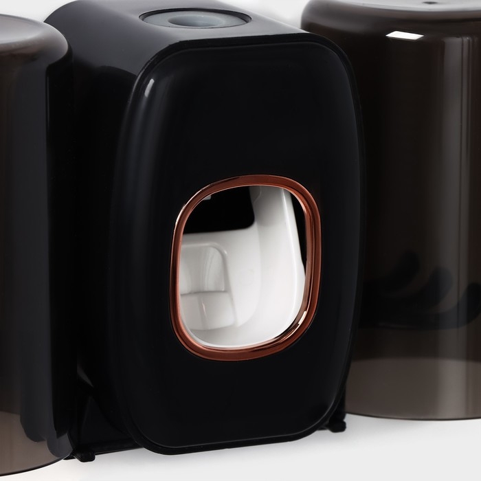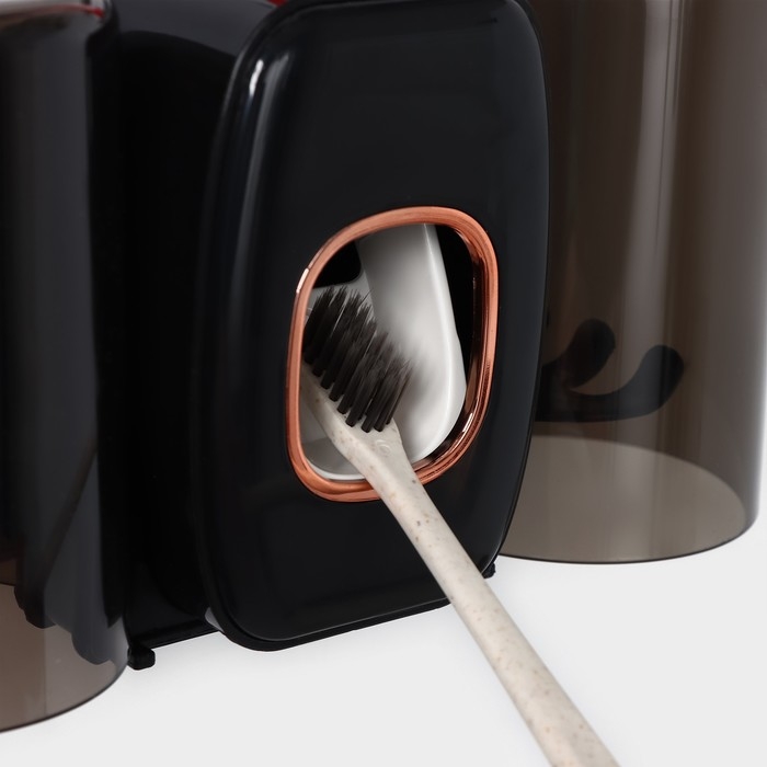 Держатель для зубных щёток с выдавливателем для зубной пасты, стакан 2 шт, 20×10,2×6,2 см, цвет чёрный