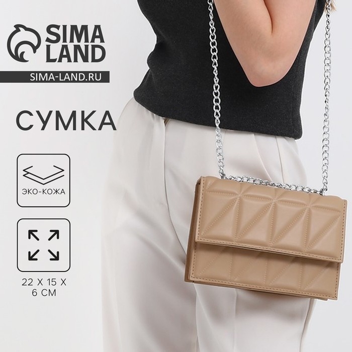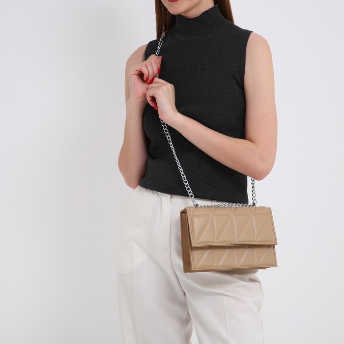 Сумка женская на клапане, 22х15х6 см, цвет бежевый