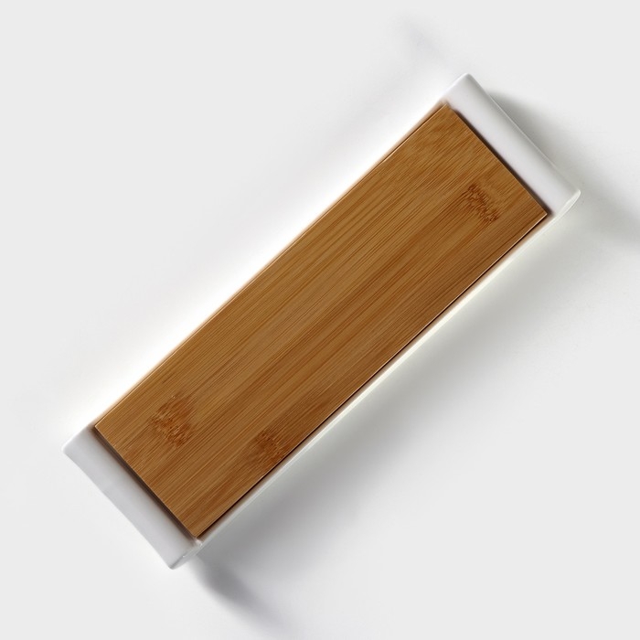 Блюдо для подачи фарфоровое с вставкой из бамбука BellaTenero, 29,5×9×2,3 см