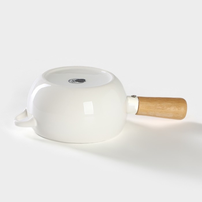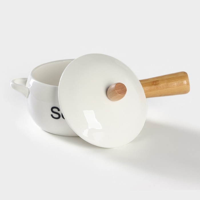 Супница фарфоровая с ручкой на бамбуковой подставке BellaTenero, 400 мл, 20,5×11,5×6,5 см, цвет белый