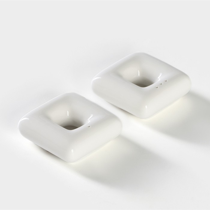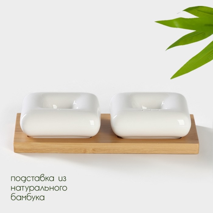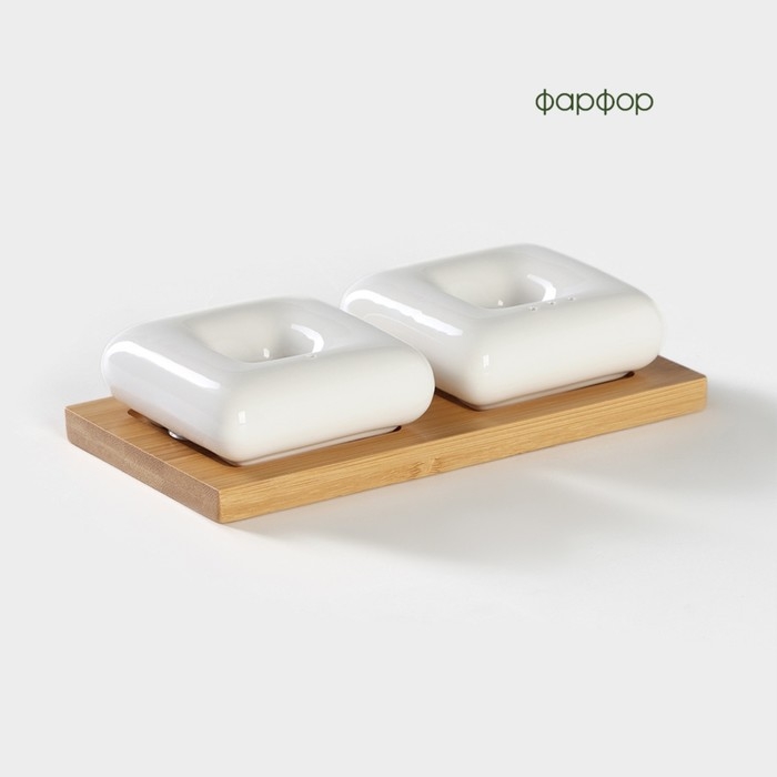 Набор фарфоровый для специй на подставке из бамбука BellaTenero «Эстет. Грани», 2 предмета: солонка 100 мл, перечница 100 мл, цвет белый