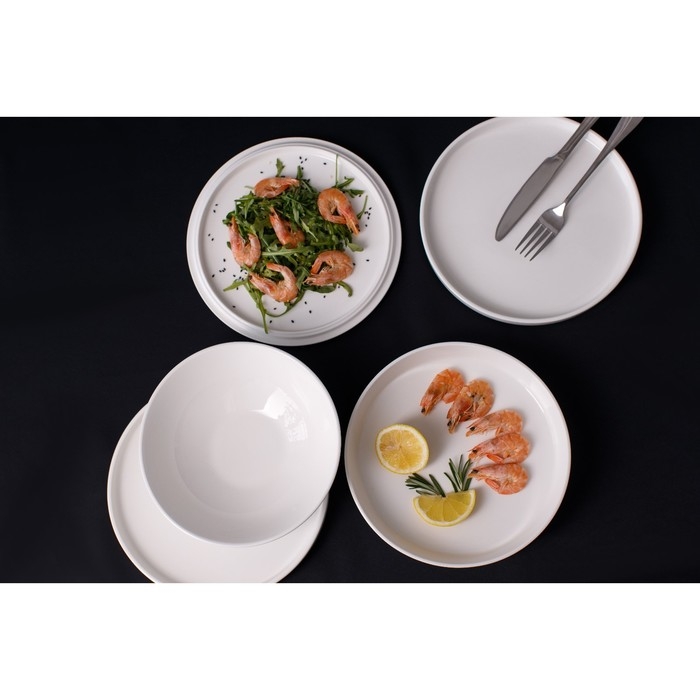 Набор фарфоровой посуды на 2 персоны Magistro La palla, 7 предметов: тарелка d=23 см, 2 тарелки d=23,2 см, 2 тарелки 1000 мл, 2 салатника 1000 мл, цвет белый