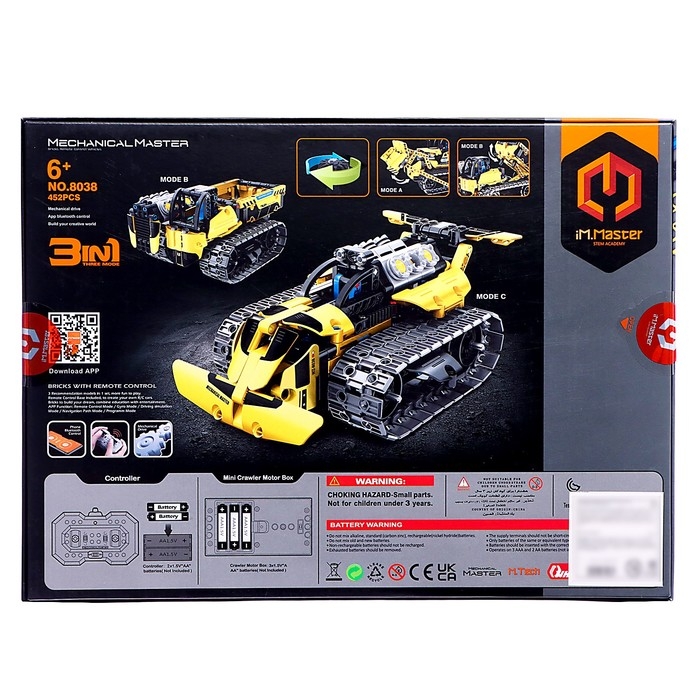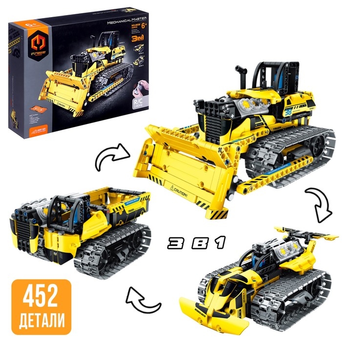 Конструктор радиоуправляемый «Строительный бульдозер», 3 варианта сборки, 452 детали