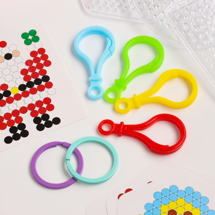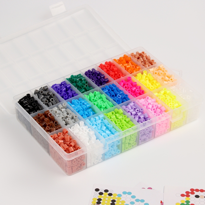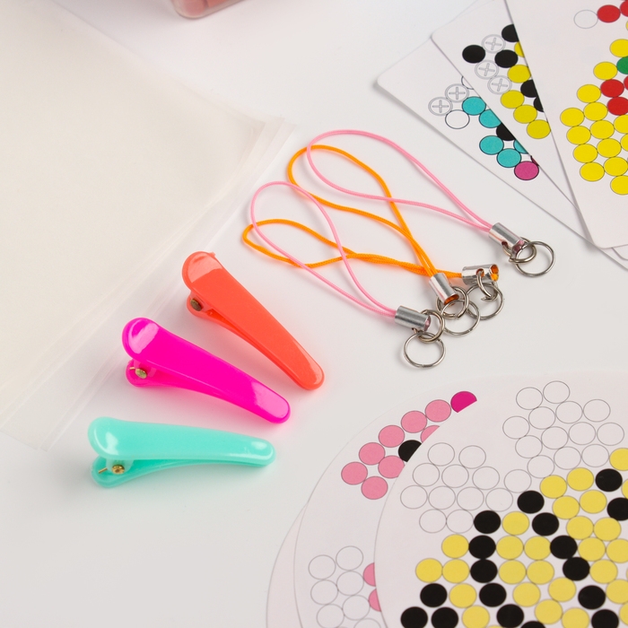 Термомозаика, 24 цвета, 4300 бусин, 2 колечка, заколки 3 шт., основы 3 шт., брелоки 4 шт.