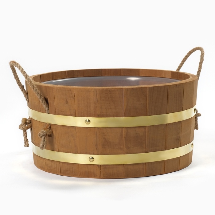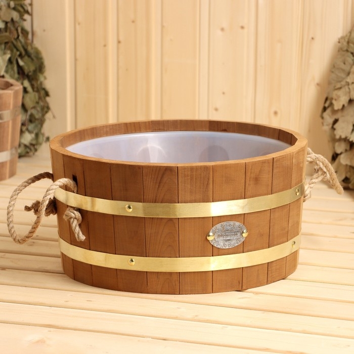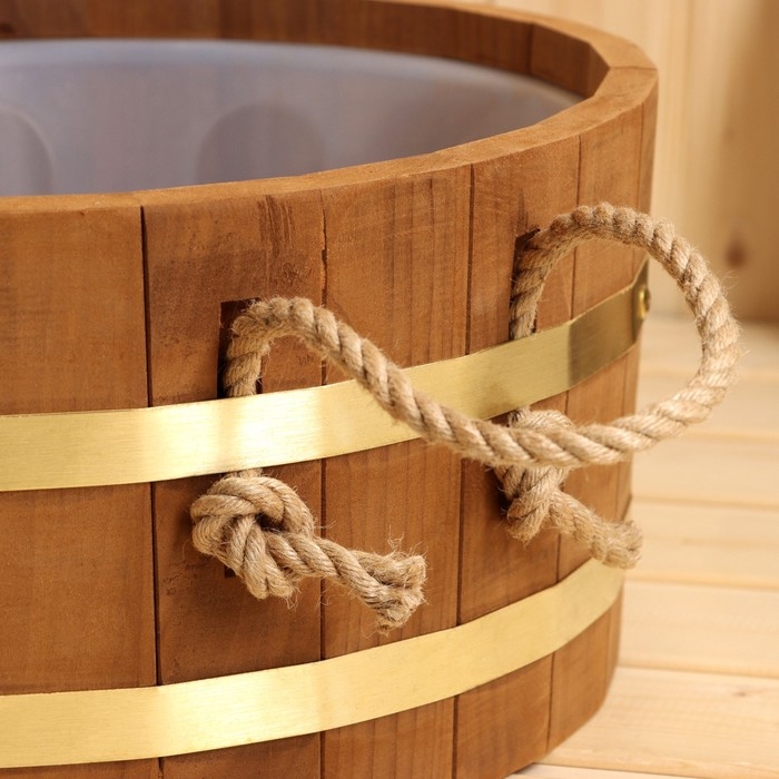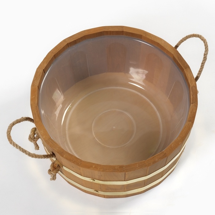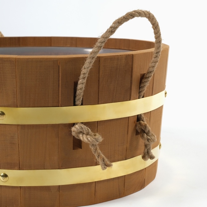 Шайка 10 л с пластиковой вставкой, ручки веревка, латунный обруч ТЕРМО липа