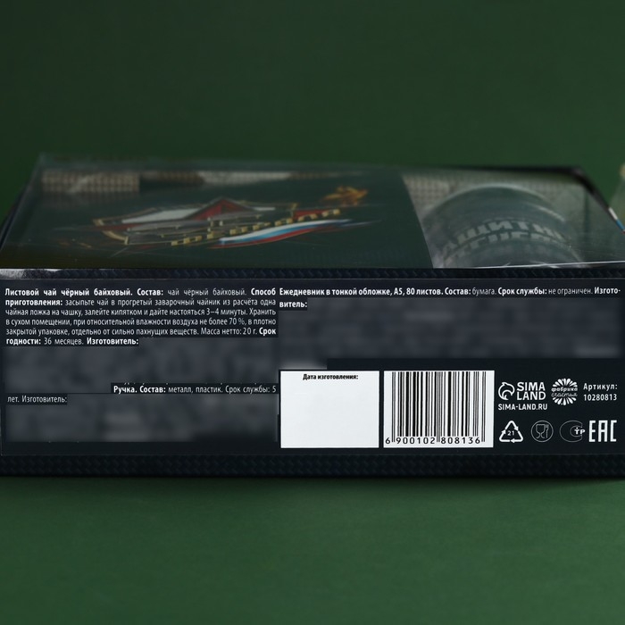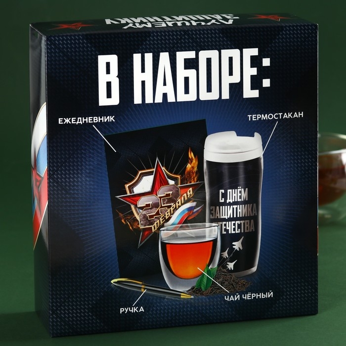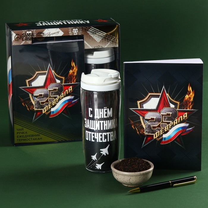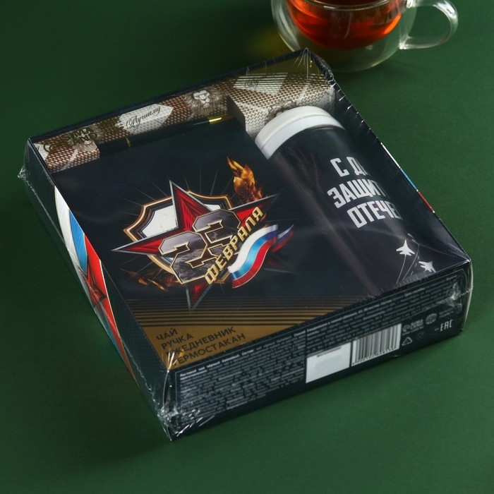 Набор «Лучшему защитнику»: чай чёрный 20 г. термостакан 350 мл., ежедневник 80 листов, ручка