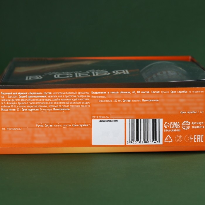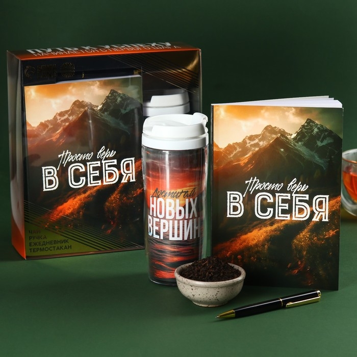 Набор «Путь к успеху»: чай чёрный с бергамотом, термостакан 350 мл., ежедневник 80 листов, ручка