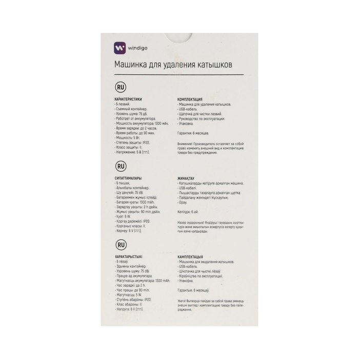Машинка для удаления катышков Windigo LUK-19, 5 Вт, 1300 мА/ч, белая