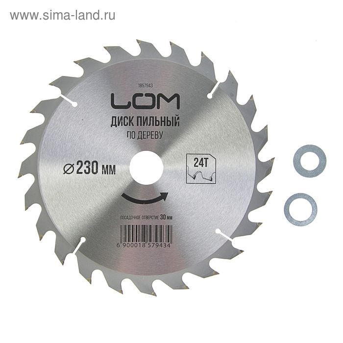 Диск пильный по дереву ЛОМ, быстрый рез, 230 х 30 мм (кольца на 20, 16), 24 зуба