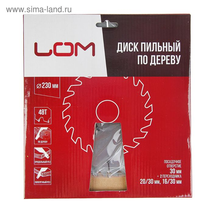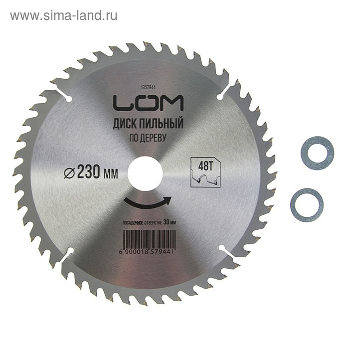 Диск пильный по дереву ЛОМ, точный рез, 230 х 30 мм (кольца на 20, 16), 48 зубьев