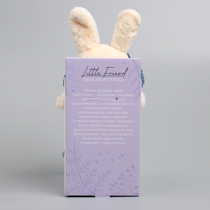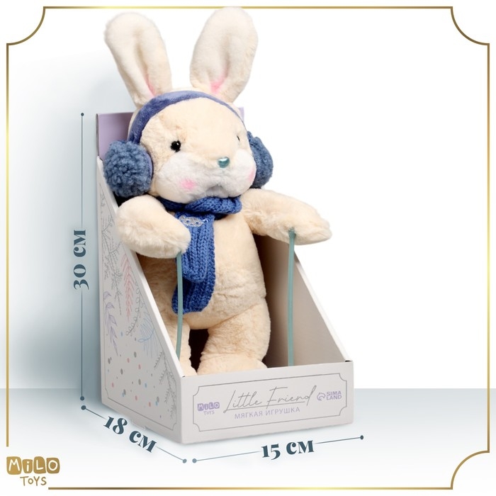 Мягкая игрушка Little Friend, зайчонок на лыжах, синий шарф, 38 см