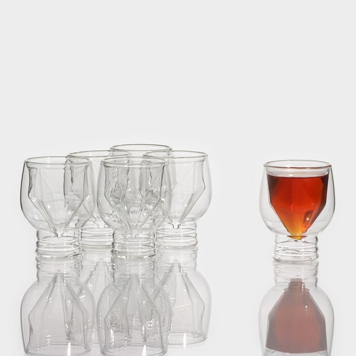 Набор стеклянных стопок - шотов с двойными стенками «Алмаз», 100 мл, 6 шт