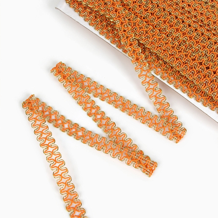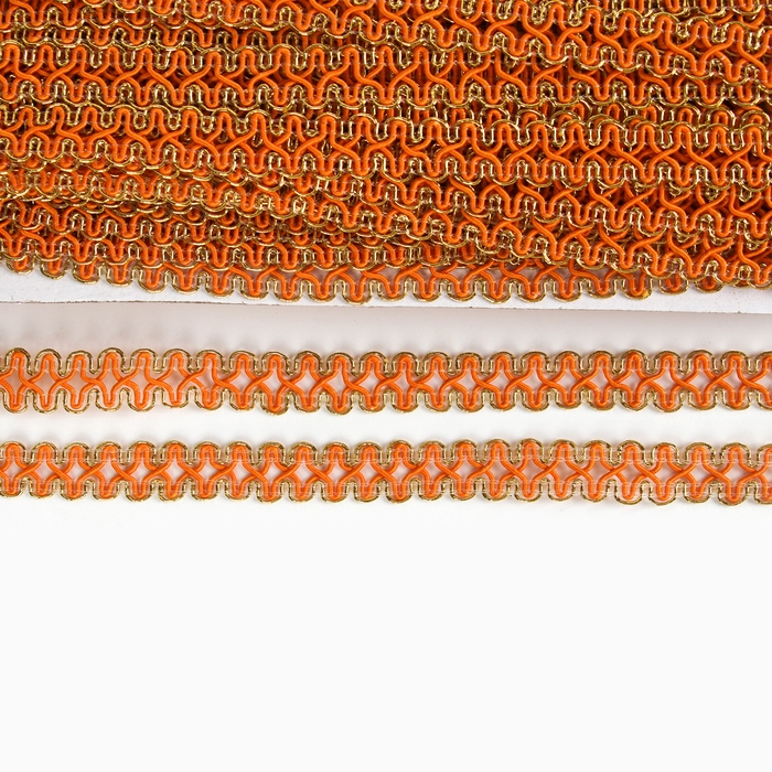 Тесьма оранжевая с золотом, 1,5 см, по 50 м