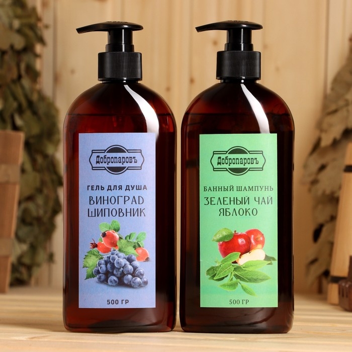 Набор гель для душа "Виноград-Шиповник" и шампунь "Зеленый чай-Яблоко" 500 мл
