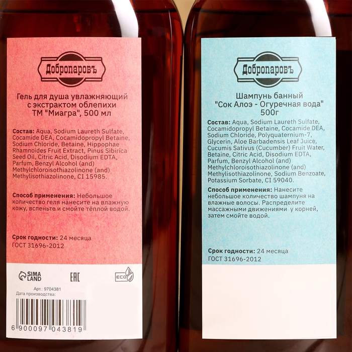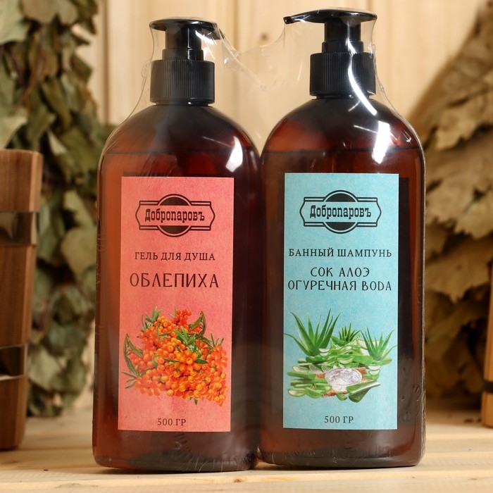 Набор гель для душа "Облепиха" и шампунь "Сок алоэ - Огуречная вода" 500 мл