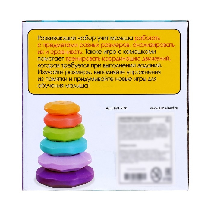 Развивающий набор «Баланс-камни» научит малышей от 3 лет работать с предметами разных размеров, анализировать их и сравнивать между собой. Также игра с камешками помогает тренировать координацию движений, которая требуется при выполнении заданий.