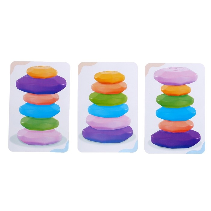 - Попросите малыша составить камешки в пирамидку, начиная с самого большого. Проговорите цвета камней, попробуйте вспомнить или найти вокруг вас предметы таких же цветов.