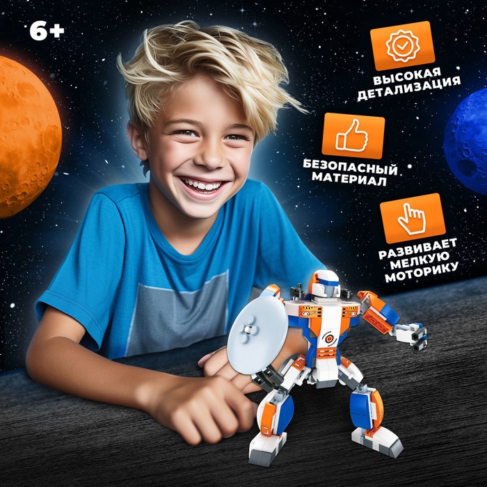 - 2 в 1: мощный космический спутник легко трансформируется в робота-киборга.