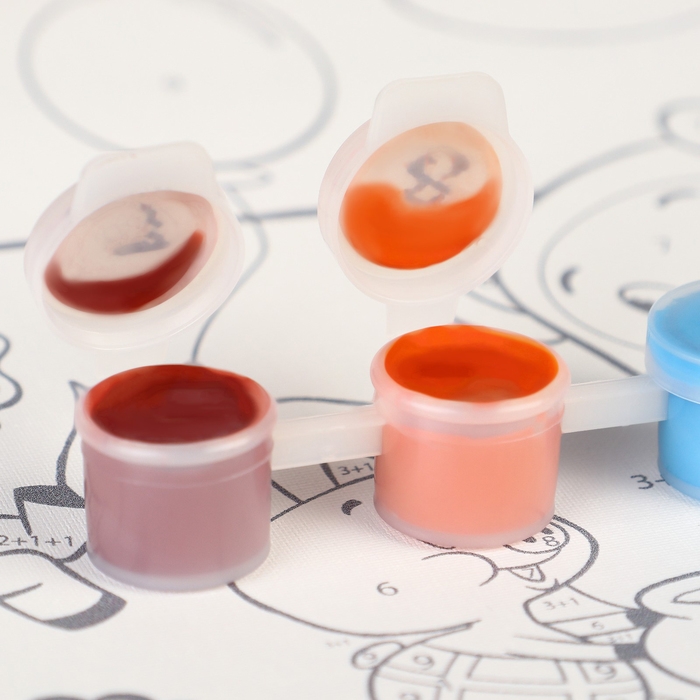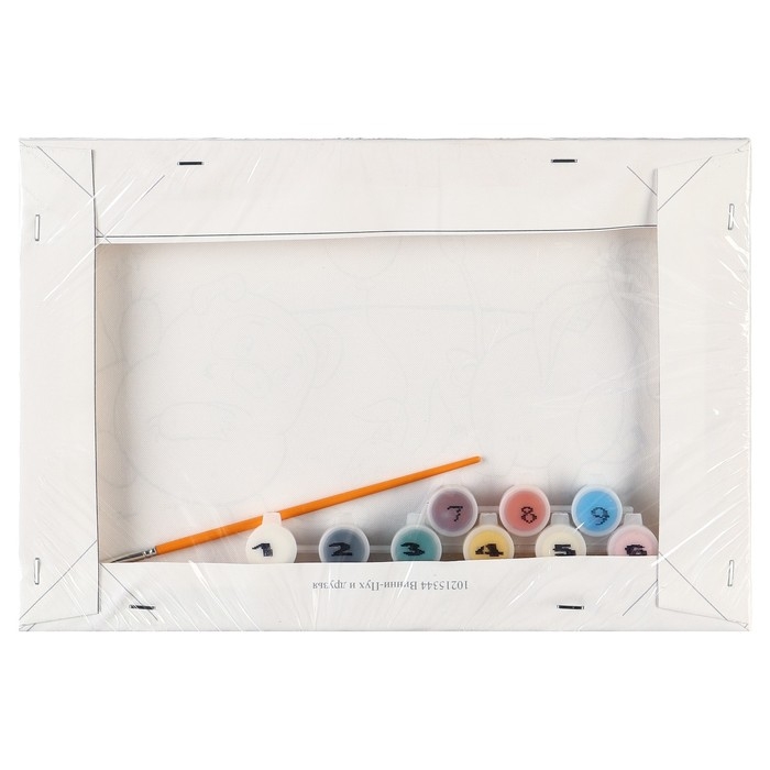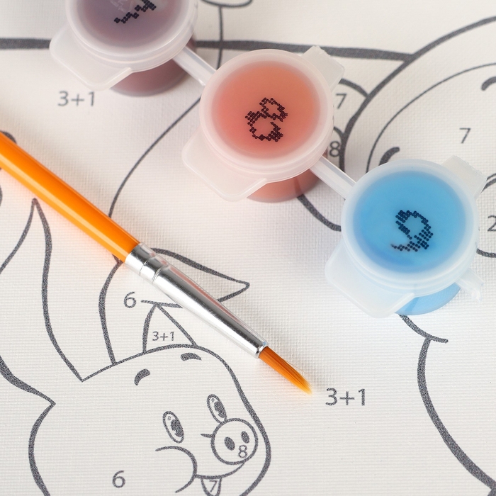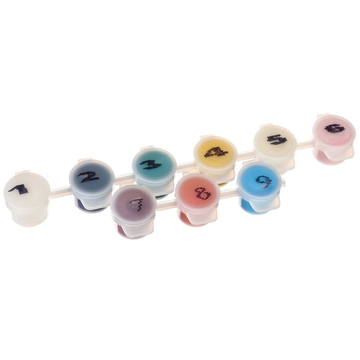 Холст разделён на фрагменты, на каждом из которых указано число, соответствующее цвету, которым нужно закрасить данный участок. В набор входят все необходимые оттенки красок, каждый из которых пронумерован.