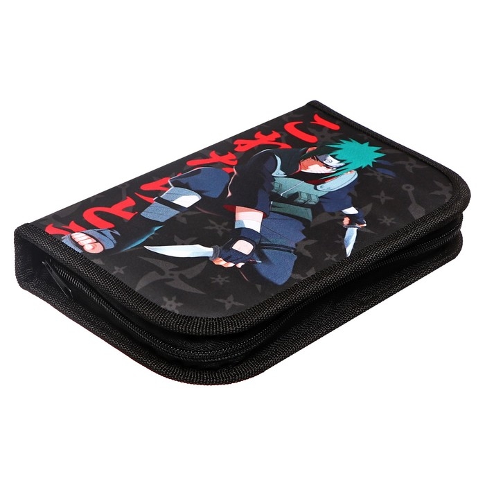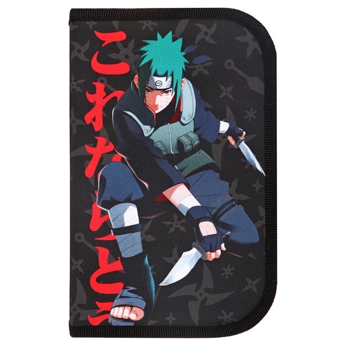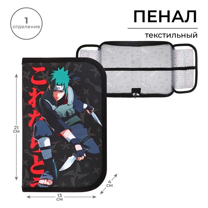 Пенал 1 секция, 130 х 210 х 40 мм, 2 откидные планки, тканевый, Calligrata TOP, Content "Аниме клинок"