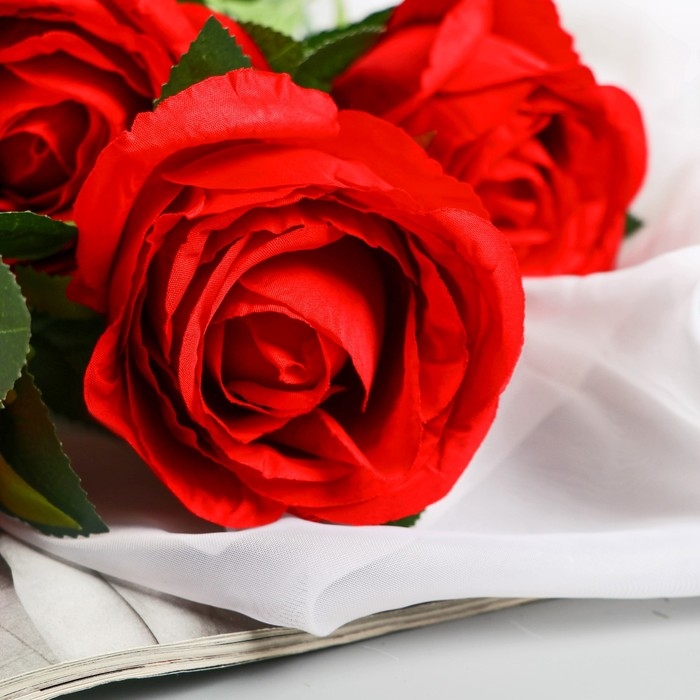 Цветы искусственные "Роза Триза" d-7 см 50 см, красный