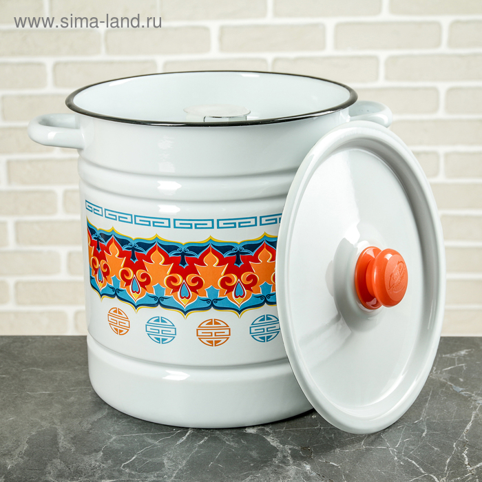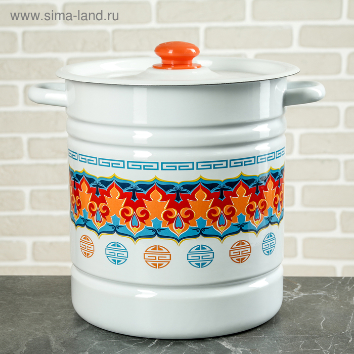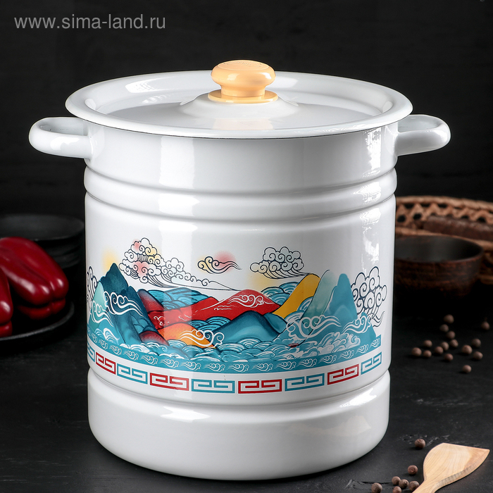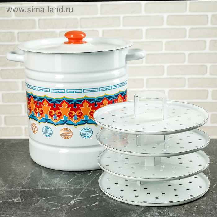 Позница-мантоварка эмалированная, 12 л, 4 вставки, цвет белый, деколь МИКС