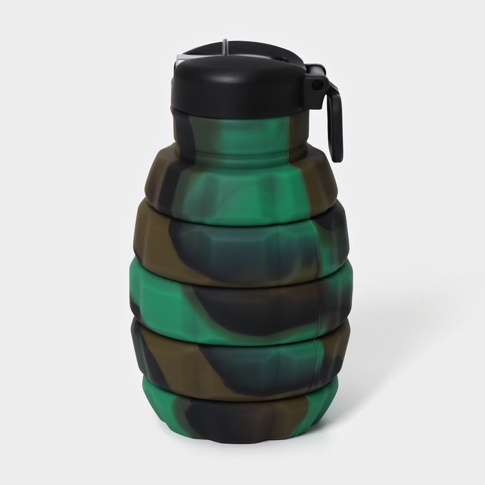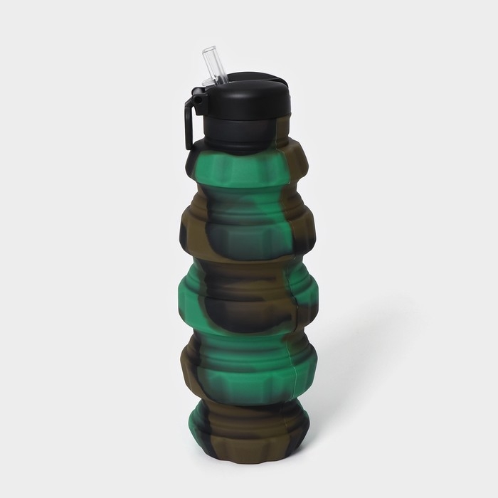 Бутылка для воды складная «Милитари», силикон, 500 мл, 7×21 см, цвет зелёный