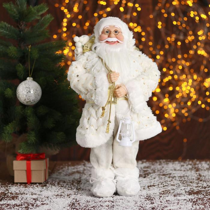 Дед Мороз "В белой шубке, с подарками" 45 см