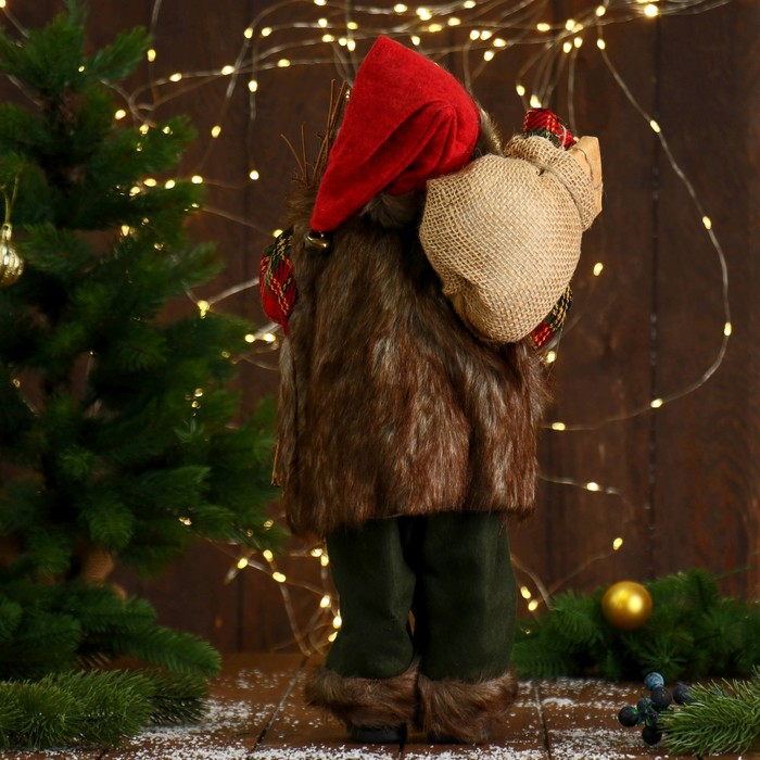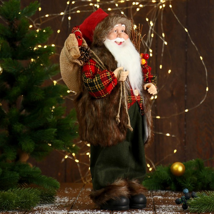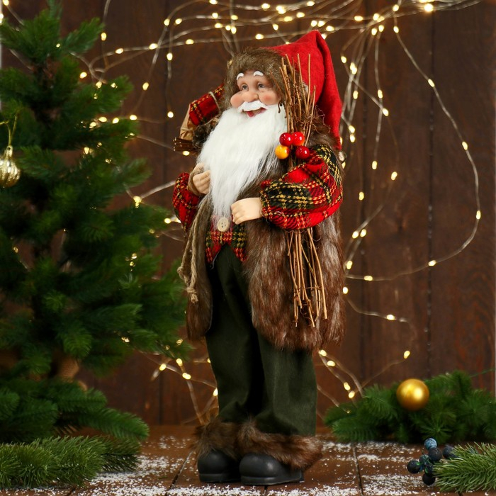 Дед Мороз "В пушистой жилетке, с веточками" 45 см