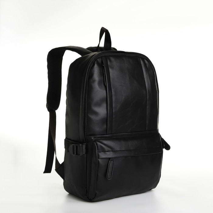 Рюкзак школьный из искусственной кожи на молнии, 5 карманов, цвет чёрный