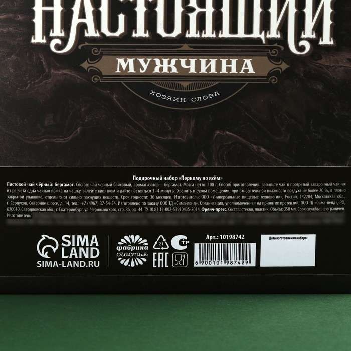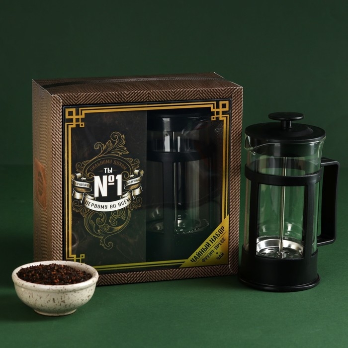 Набор «Первому во всём»: чай чёрный с бергамотом 100 г., френч-пресс