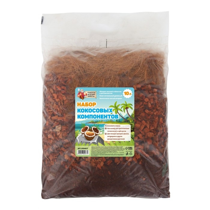 Состав: Кокосовое волокно, Кокосовые чипсы, Кокосовый торф