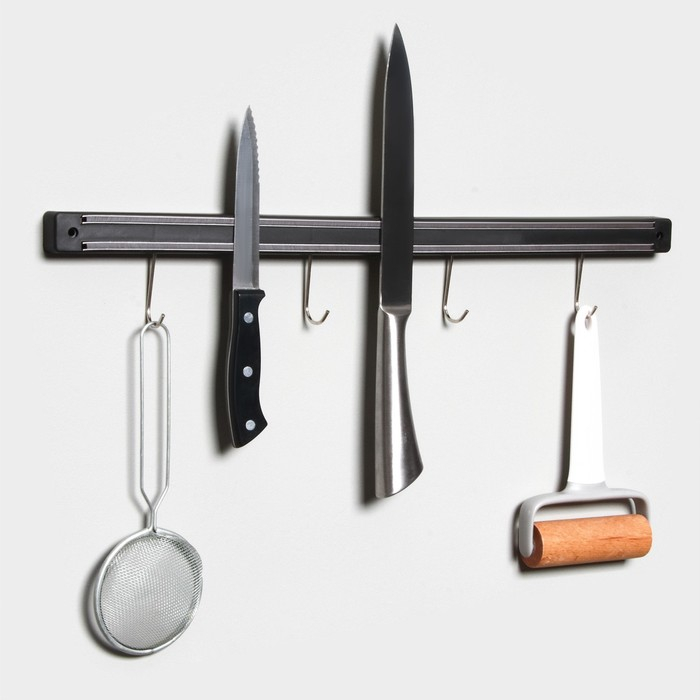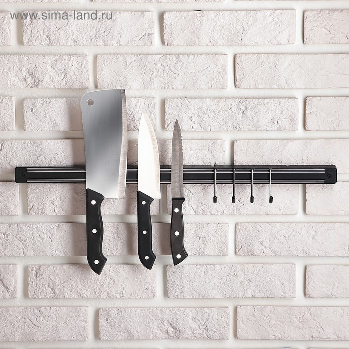 Держатель для ножей магнитный Доляна «Линия», с крючками, 51 см