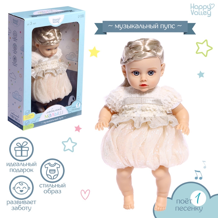 Музыкальный пупс «Любимый малыш» станет очаровательным другом для вашего ребёнка. Кукла воспроизводит песенку, поэтому обязательно повесели т малыша.