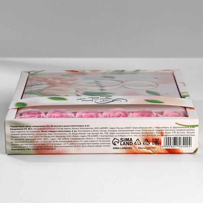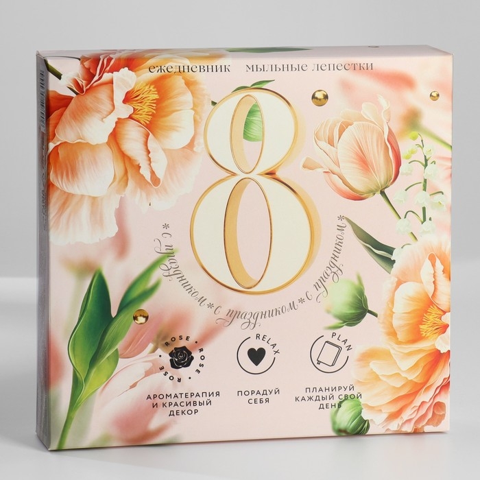 Подарочный набор: ежедневник А5,80 листов и мыльные лепестки «Тюльпаны 8 марта»
