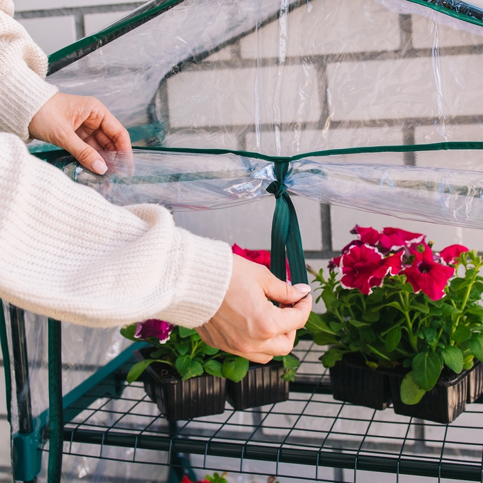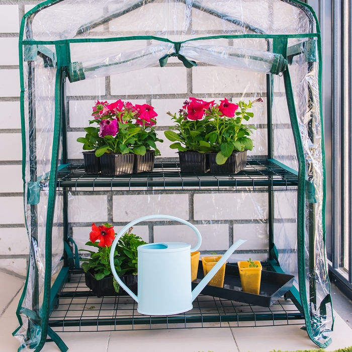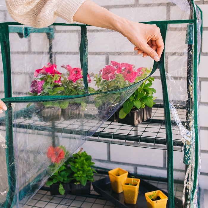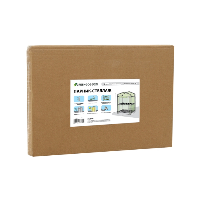 Парник-стеллаж, 2 полки, 93 × 69 × 49 см, металлический каркас d = 16 мм, чехол плёнка 80 мкм, Greengo