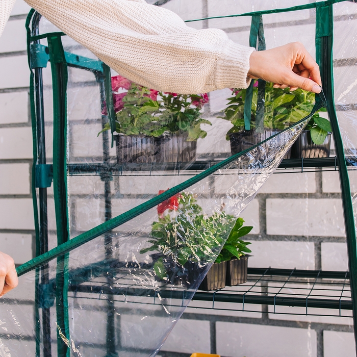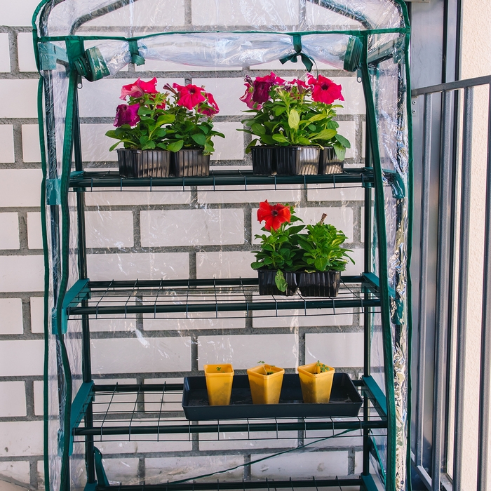 Парник-стеллаж, 4 полки, 125 × 70 × 30 см, металлический каркас d = 16 мм, чехол плёнка 80 мкм, Greengo