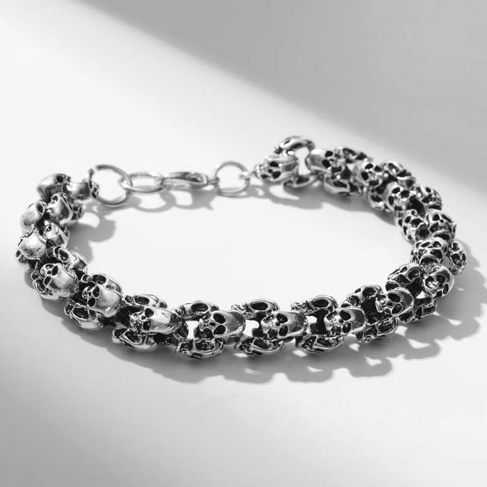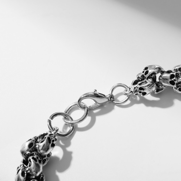 Браслет мужской «Брутал» черепа, цвет чернёное серебро, 22 см