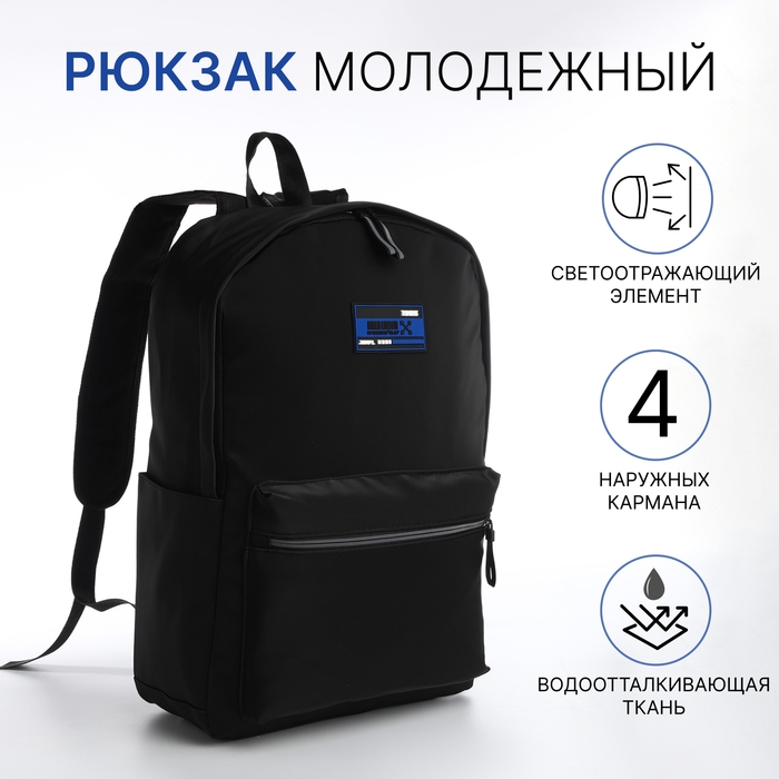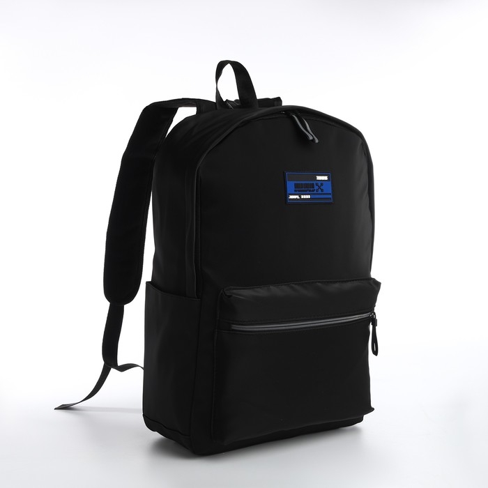 Рюкзак школьный из текстиля на молнии, водонепроницаемый, 4 кармана, цвет чёрный/синий