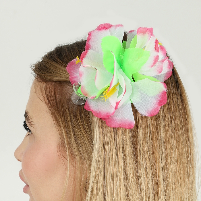 Гавайский набор зажим с цветком фуксия, венок