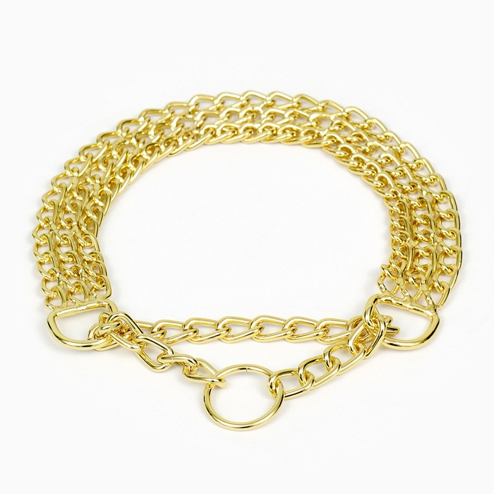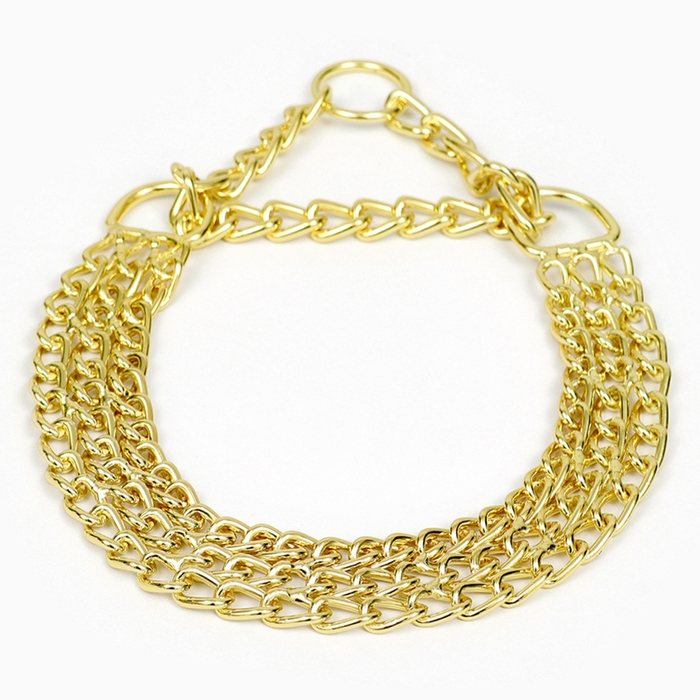 Ошейник - полуудавка металлический трехрядный, 40 см, толщина проволоки 2 мм, золотистый