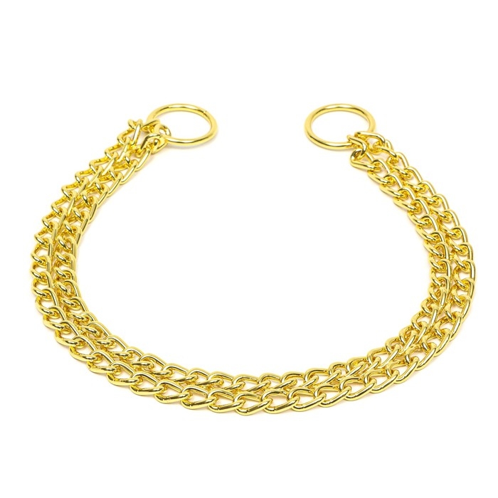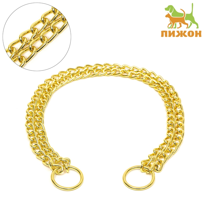 Ошейник - удавка металлический двухрядный, 55 см, толщина проволоки 2,5 мм, золотистый