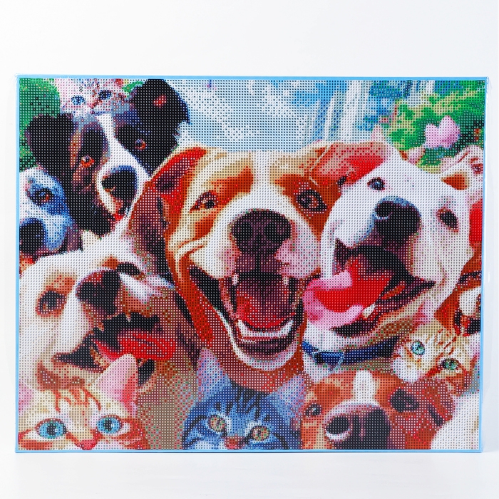Алмазная мозаика с полным заполнением на холсте с подрамником «Веселые животные», 40 х 50 см